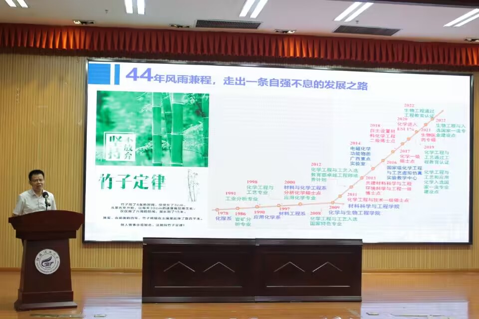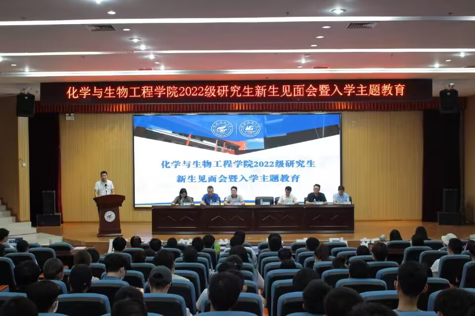在雁山校区图书馆报告厅召开2022级硕士研究生新生见面会暨入学主题教育活动。出席本次活动的有学院党委书记彭代江,学院党委副书记、院长匡小军和全体领导班子成员,以及研究生导师代表和全体2022级研究生新生。