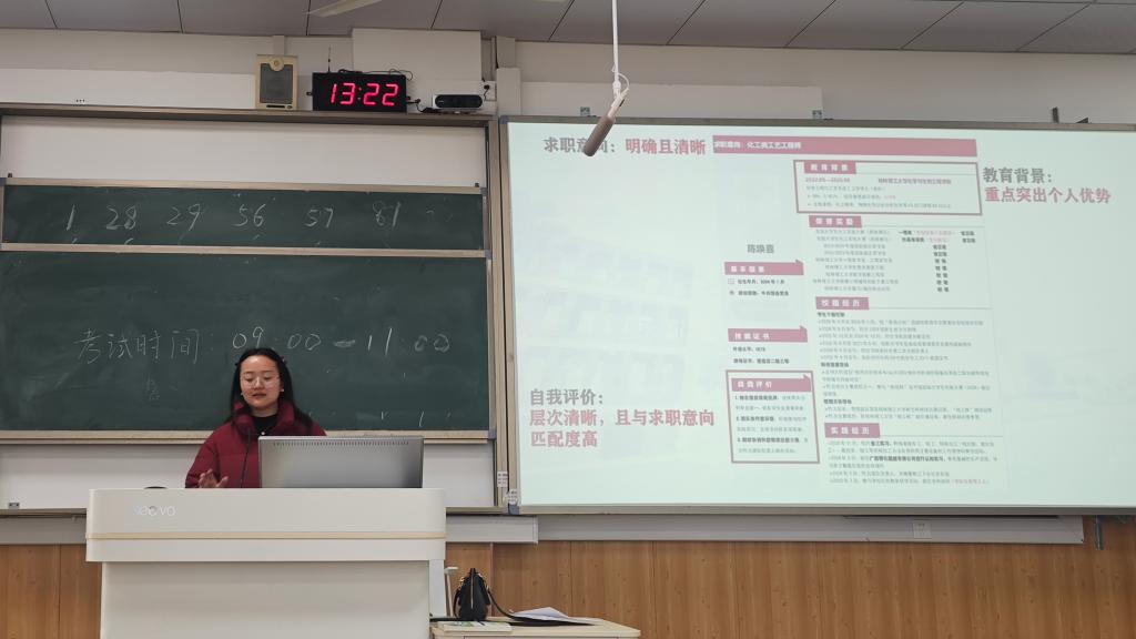于雁山校区06408教室开展“简历制作和面试技巧指导”培训。本次会议由辅导员马亚博老师负责,2022级研究生参会。