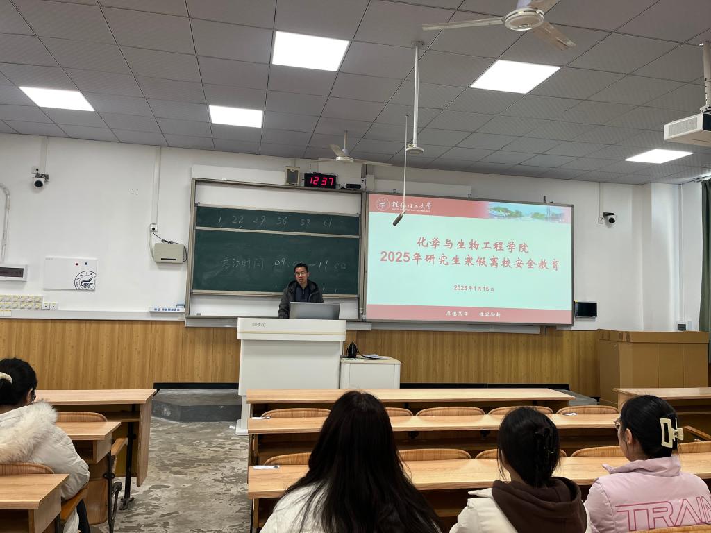 为加强研究生2025年寒假安全意识,构建和谐平安校园。1月15日,学院在雁山校区06408-06409两教室召开2025年研究生寒假离校暨延迟离校安全教育大会。学院副院长孔翔飞,研究生辅导员及全体在校研究生参加了会议。