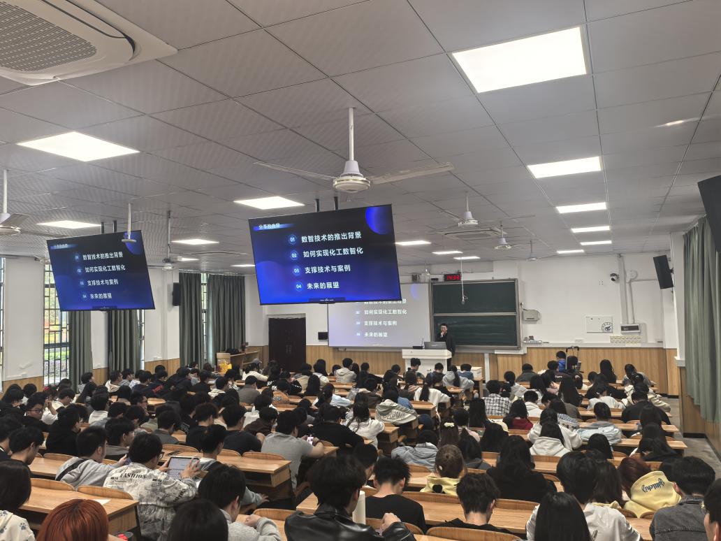 奚弘之副总工程师,浙江大学控制工程专业硕士研究生毕业,主要负责化工数智化产品的开发和设计。他给同学们进行了一场关于“如何实现化工数智化,以及未来智能化工的发展方向”前瞻性的报告。他首先从“化工企业面临的核心问题”引入,然后结合国家《关于“十四五”推动石化化工行业高质量发展的指导意见》调整产业结构、绿色安全、优化产业布局、加快创新发展、推动数字化转型,提出了“智能化工企业走深向实”的五大趋势:成本下降,无人值守,提升效益,高效运维,资产增值。他根据自己的工作经验,为同学们介绍了工业操作系统、流程工业过程模拟技术、装置自主运行技术等实现化工行业智能制造转型的几大关键技术,并结合中控智能化工厂典型案例,比如:湖北兴发集团氯碱工艺的全流程一键式开停车、自主运行、无人巡检、无人操作、无人记录、黑屏管理等实际应用场景,向在座的同学们直观地展示了“化工数智技术”带来的无人值守灯塔工厂是怎么运行的,并阐述了未来流程工业AI大模型会如何彻底颠覆当前的DCS和工业软件技术。