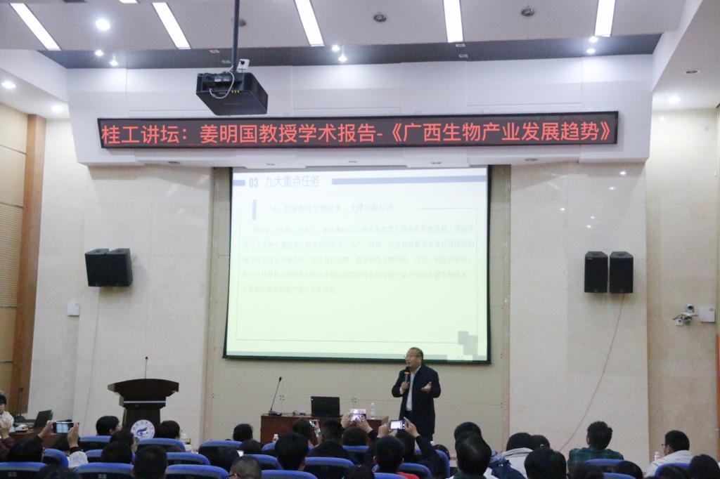 11月19日下午,广西本科高校生物科学与生物工程类教学指导委员会副主任委员姜明国教授应邀在雁山校区12号楼负一楼学术报告厅作了题为“广西生物产业发展趋势”的学术报告。工口漫画