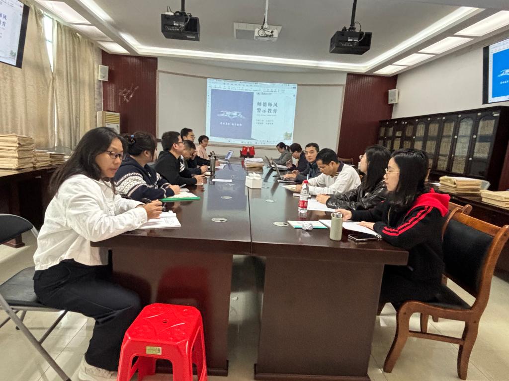 会议首先围绕师德师风建设展开。与会教师共同学习了相关文件精神,并结合教学实践中的具体案例进行了交流。教师们一致认为,良好的师德师风是保障教学质量的基础,全体教师应在日常工作中以身作则,将育人职责落到实处。