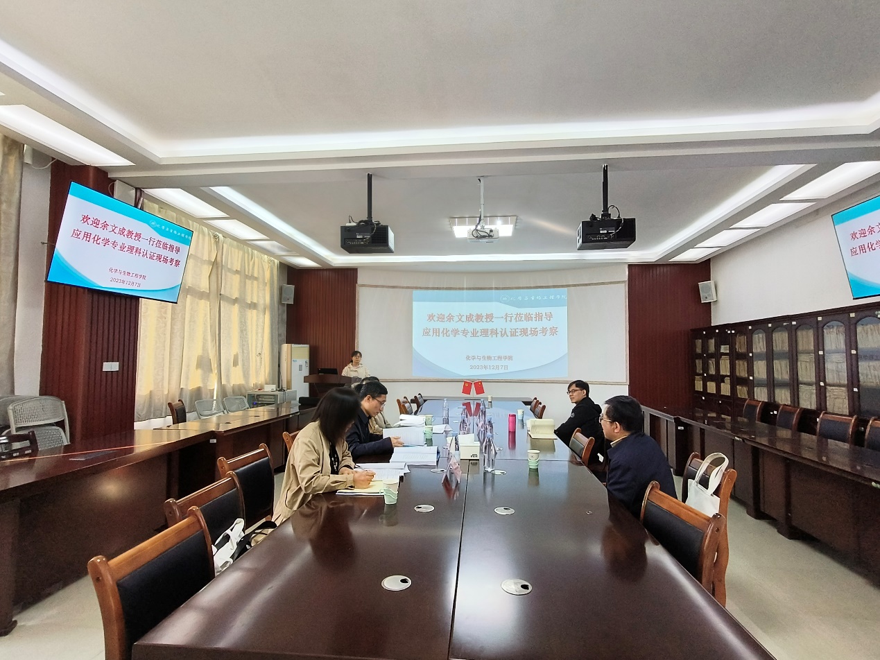 2023年12月7日上午,土建学院余文成教授一行莅临学院,对应用化学专业理科认证进行现场考察验收,应用化学专业负责人李建平、教研室主任袁亚利、教授张云等人参加了此次验收。在验收现场,应用化学教研室主任袁亚利进行了自评汇报,从专业基本情况、7大模块内容、专业建设成效与特色等方面对专业建设情况进行说明。之后,专家组对照理科专业认证要求,抽取了分析化学、仪器分析、现代化学实验综合2、生产实习等几门课程材料进行现场审阅,涵盖了理论、实验、实践课程的教学材料。根据审阅结果,提出了相应的整改意见。