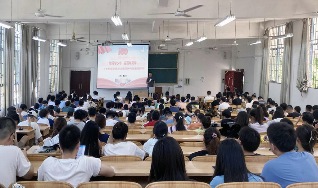 为庆祝中国共产党成立100周年,弘扬中国精神,传承红色基因。6月1日下午,学院在雁山校区06101开展专题为《恰同学少年 迎百年风华》党史学习教育专题讲座。本次专题讲座由学院学工组组长黄道坤老师主讲,学院本科生、研究生共计140余名学生参加。