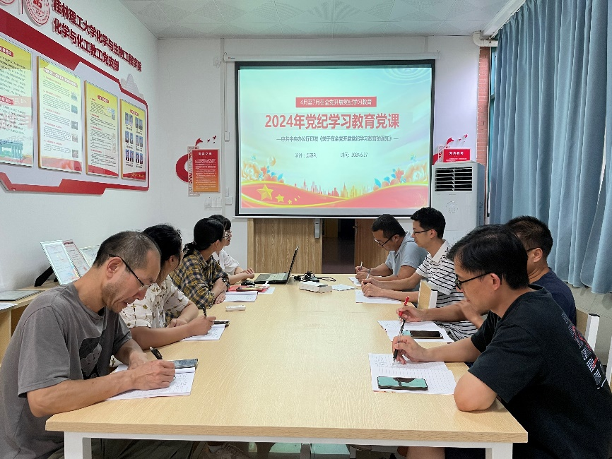 应用化学教工党支部开展党纪学习教育主题党课,本次党课由支部书记袁亚利同志讲授《中国共产党纪律处分条例》(以下简称《条例》),支部全体党员参加。