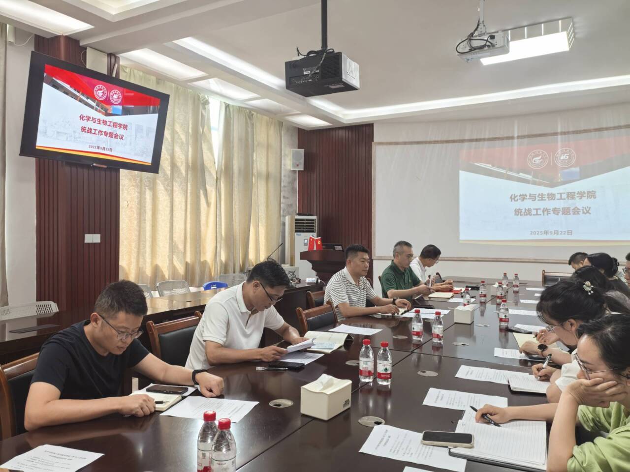 为深入学习贯彻习近平总书记关于做好新时代党的统一战线工作的重要思想,全面落实中央统战工作会议精神和学校党委关于统战工作的部署要求,进一步加强和改进新时代学院统战工作,9月22日下午学院在12217会议室组织召开统战工作专题会议。学院党政领导班子成员、各党支部书记、教师代表等参加会议。会议由学院副院长何方主持。