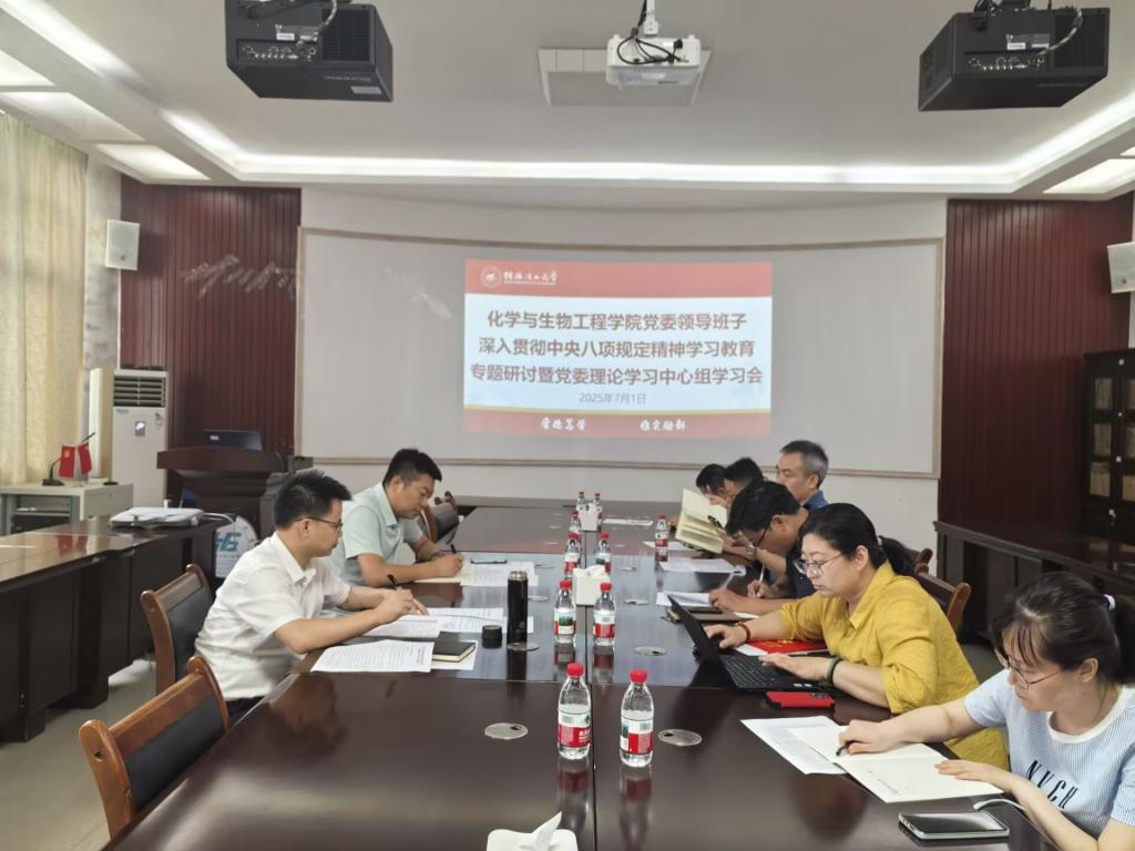 2025年7月1日下午,学院党委理论学习中心组在雁山校区12217会议室召开专题学习研讨会,围绕深入贯彻中央八项规定精神开展学习教育和专题研讨。会议由学院党委书记彭代江同志主持,中心组全体成员参加。