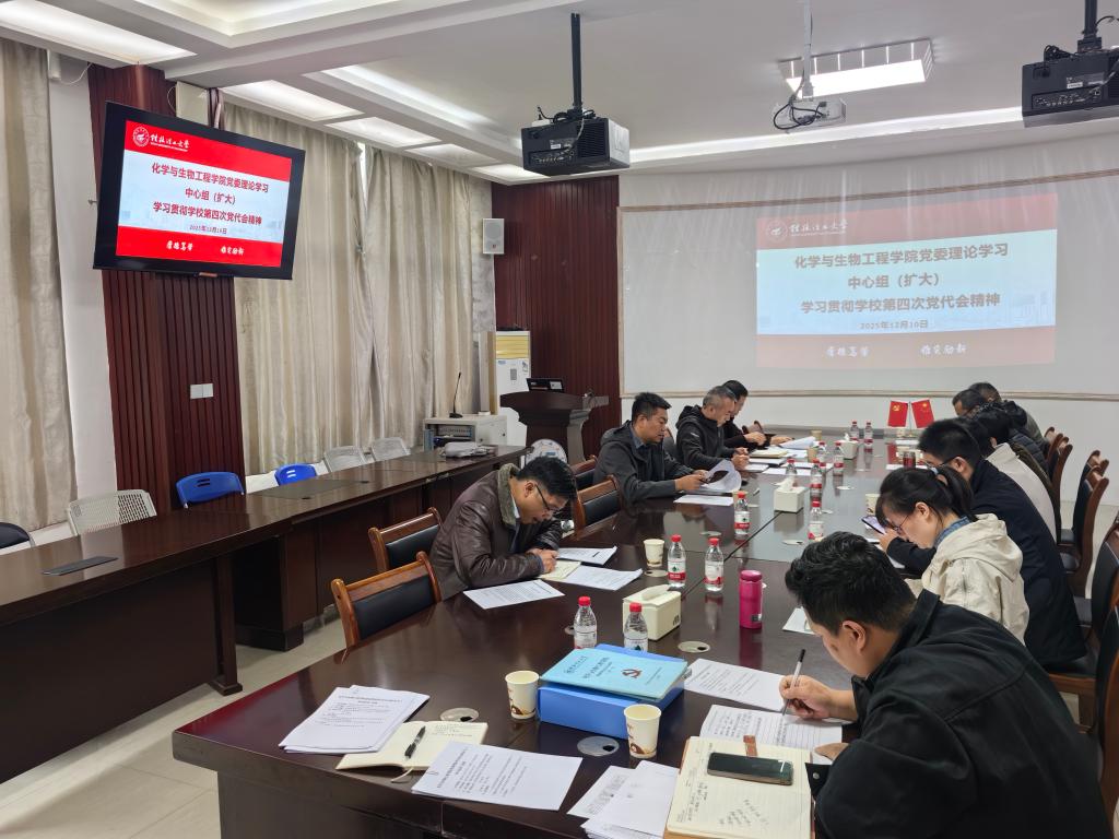 2025年12月10日下午,学院党委理论学习中心组在雁山校区12217会议室举行专题学习会,深入学习领会学校第四次党代会精神。学习会由学院党委书记彭代江同志主持,中心组全体成员参加。