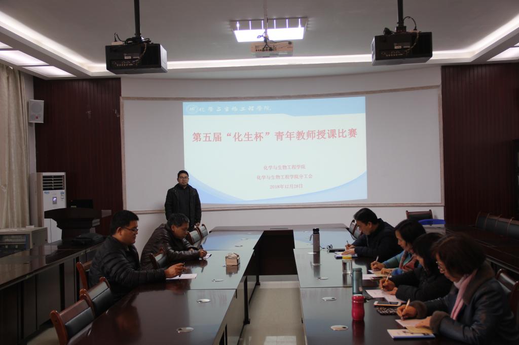 分工会于2018年12月28日积极协同学院行政主办了“第五届‘化生杯’青年教师授课比赛”活动。比赛在雁山校区12217多功能室举行。