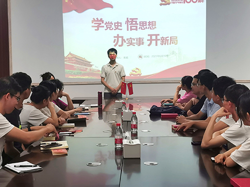研究生第二党支部于6月10日晚在 12217会议室开展“学党史悟思想办实事开新局”专题党课,由支部书记朱皓同志进行授课。