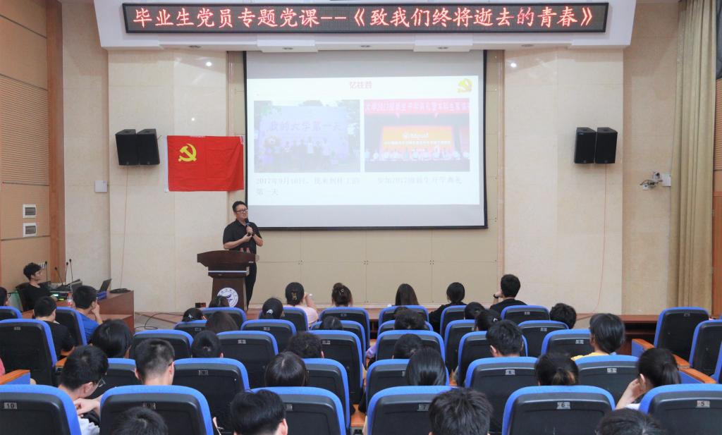 为加强毕业生党员教育,让毕业生党员以坚定的信念、高度的责任感和使命感走向新的学习和工作岗位,6月10日下午,学院党委副书记李南在萃华楼报告厅以“致我们终将逝去的青春”为主题给全体毕业生党员讲授党课。