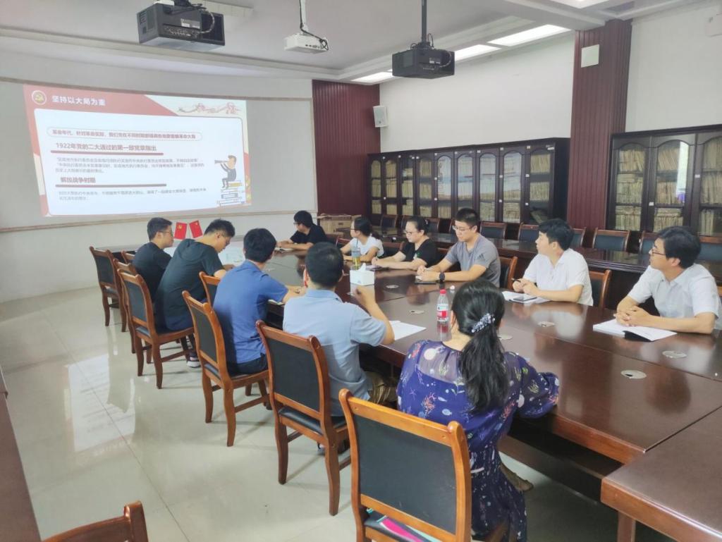 为营造党史教育浓厚氛围,使教师党员以更自觉、更投入、更担当的姿态推动学院工作,7月6日下午,学院副院长刘勇平同志在雁山12217会议室为能源化学工程教工党支部讲授专题党课,党课的主题为“党史视角下的‘四个意识’”,能源化学工程党支部全体党员参加本次党课。