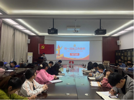 为深入学习贯彻习近平总书记关于加强和改进统一战线工作的重要思想,强化政治担当,增强责任意识。11月19日下午,学院研究生第三党支部于12217会议室召开《中国共产党统一战线工作条例》学习会。本次学习会由支部副书记黄金福同志主持,支部全体党员参加。