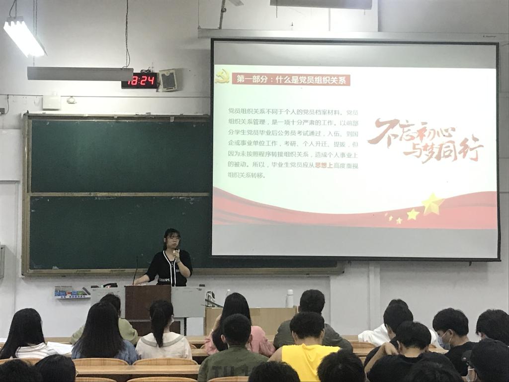 会上,熊艳老师首先强调了党员党组织关系转接工作的重要性,提醒各位党员要高度重视党组织关系的转接工作,切实增强组织观念,按时转移党组织关系,勿因自身疏忽等原因造成各种后续问题以致脱党。随后,熊艳老师结合上级党组织关于毕业生党员关系转接相关内容,针对党组织关系转接的具体流程、方法步骤和工作要求进行解读,重点从区内、区外、已落实工作单位、未落实工作单位等几个方面进行了详细讲解,强调了在不同情况下组织关系转接的方法、步骤、具体时间安排及注意事项等。