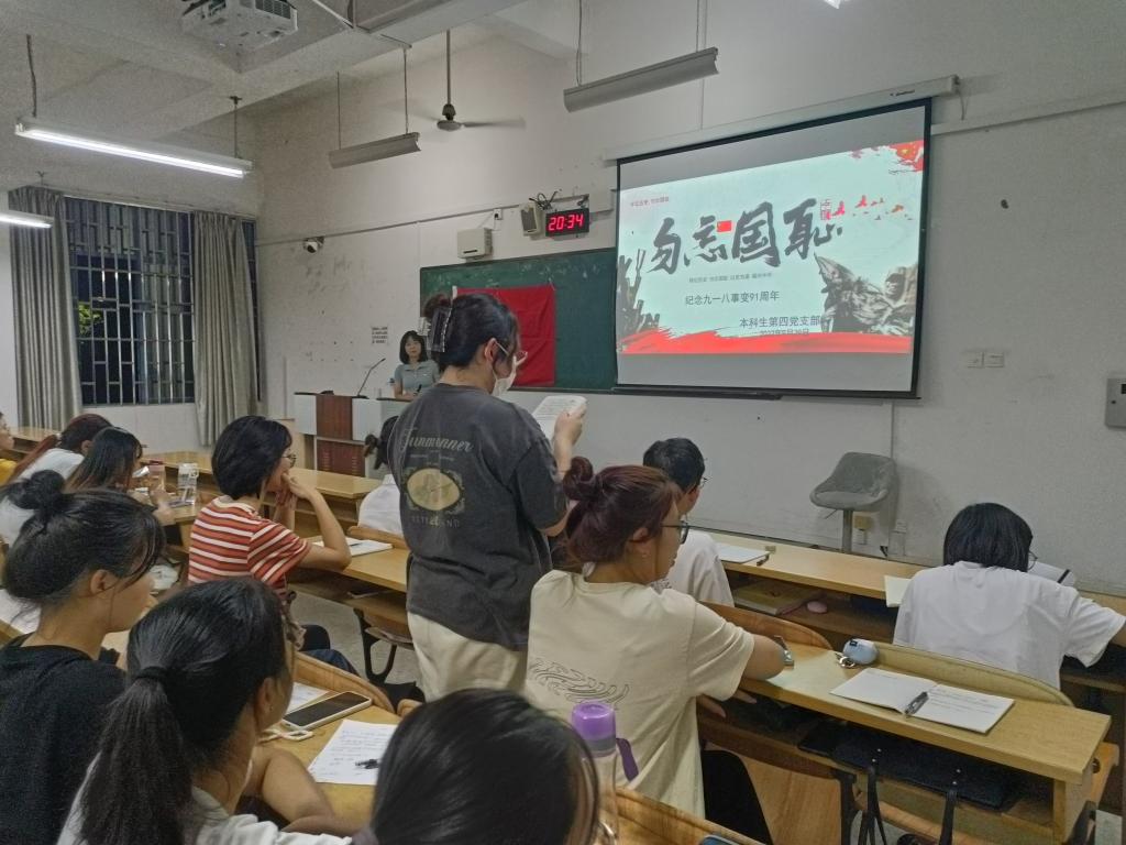 为深入了解中国的抗日战争史,增强民族意识,培养支部同志的爱国主义精神。本科生第四党支部于9月29日在06103开展“铭记历史,勿忘国耻”纪念九一八事变91周年主题党日活动。本次党日活动由李俊松同志主持,支部全体同志参加。
