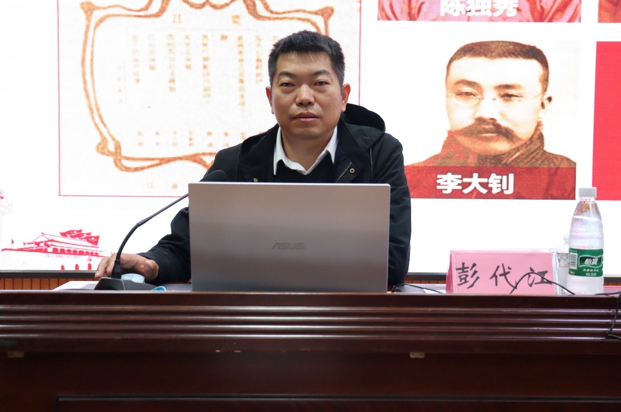 党课上,彭书记从“学史明理:学习党史的重要意义及百年党史四个阶段的划分”“开天辟地:在新民主主义革命时期完成救国大业”“改天换地:在社会主义革命和建设时期完成兴国大业”“翻天覆地:在改革开放和社会主义现代化建设新时期推进富国大业”“惊天动地:在中国特色社会主义进入新时代推进并将在本世纪中叶实现强国大业”“顶天立地:争做堪当民族复兴重任的时代新人”六个部分为新生讲授党课。首先,彭书记介绍了学习党史的重要意义和党史的发展历程,教育大家要从历史中汲取智慧和力量,继承党的成功经验和优良传统。随后,彭书记从习近平总书记对青年的殷切期望和对新时代中国青年的六点要求着手,向新生传播成长“秘笈”、入党条件和流程及榜样人物事迹。最后,彭代江书记强调,青年要保持初生牛犊不怕虎、越是艰险越向前的刚健勇毅,勇立时代潮头,争做时代先锋!