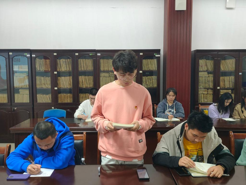 本科生第二党支部在12217会议室开展“深入学习党的二十大精神”主题党课学习,本次活动由支部书记张伟颀同志主持,支部全体党员参与。