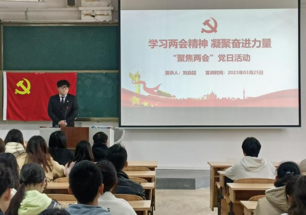 活动伊始,刘焱喆同志向大家介绍了2023年两会的主要议程和主要内容。紧接着,刘焱喆同志带领大家回顾我们党、我们国家过去五年的工作成就和工作总结。随后,刘焱喆同志带领大家学习两会的重要精神。通过学习2023年全国两会热词,让支部成员对两会内容有了更深入地学习和理解。最后,刘焱喆同志对此次党日活动进行总结:在看到发展成就的同时,我们也要清醒认识到我国仍然是一个发展中国家,我们要在党的领导下坚持稳中求进的总基调,为把我国建设成为富强民主文明和谐美丽的社会主义现代化强国而奋斗。
