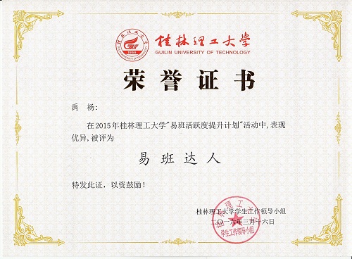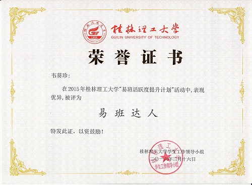 在学风建设月暨师生文明礼仪知识竞赛中,化学类2015-5班荣获优秀组织奖。