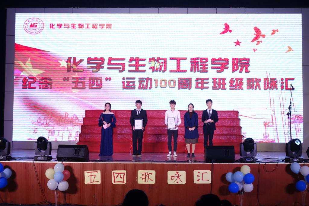 比赛在全体师生高昂的《光荣啊,中国共青团》歌声中正式拉开序幕。班级歌咏汇共分为 “歌祖国,亮中华之风”、“颂青春,展时代之彩”、“迎五四,担青年之任”三个篇章,共有十八支班级参加比赛。合唱表演开始,应用化学2017-1班便以一首激情澎湃的《歌唱祖国》唱响了第一个篇章,他们用雄壮有力的歌声,唱出了祖国的朝气蓬勃、蒸蒸日上,瞬间燃爆现场。生物工程2017-2班以手语配合歌唱的形式,为现场师生带来了精彩歌曲《国家》。接下来,每支参赛班级用独到的表演形式诠释了对于青春,对于祖国的热爱,传递出了新时代青春正能量!经过激烈角逐,化工2017-1班、17-2班的合唱曲目《奔跑》荣获一等奖;化工2018卓越班、生工2017-2班获得二等奖;化工2017-3班、生工2018-1班、应化2018创新班获得三等奖。