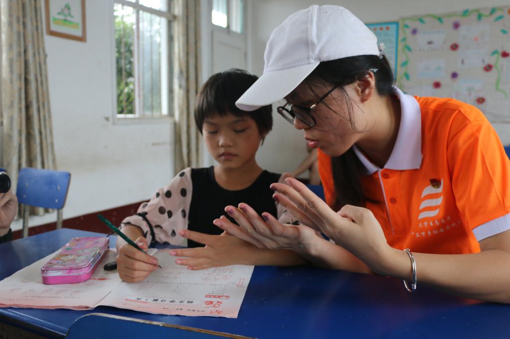 实践团成员辅导小朋友写暑假作业