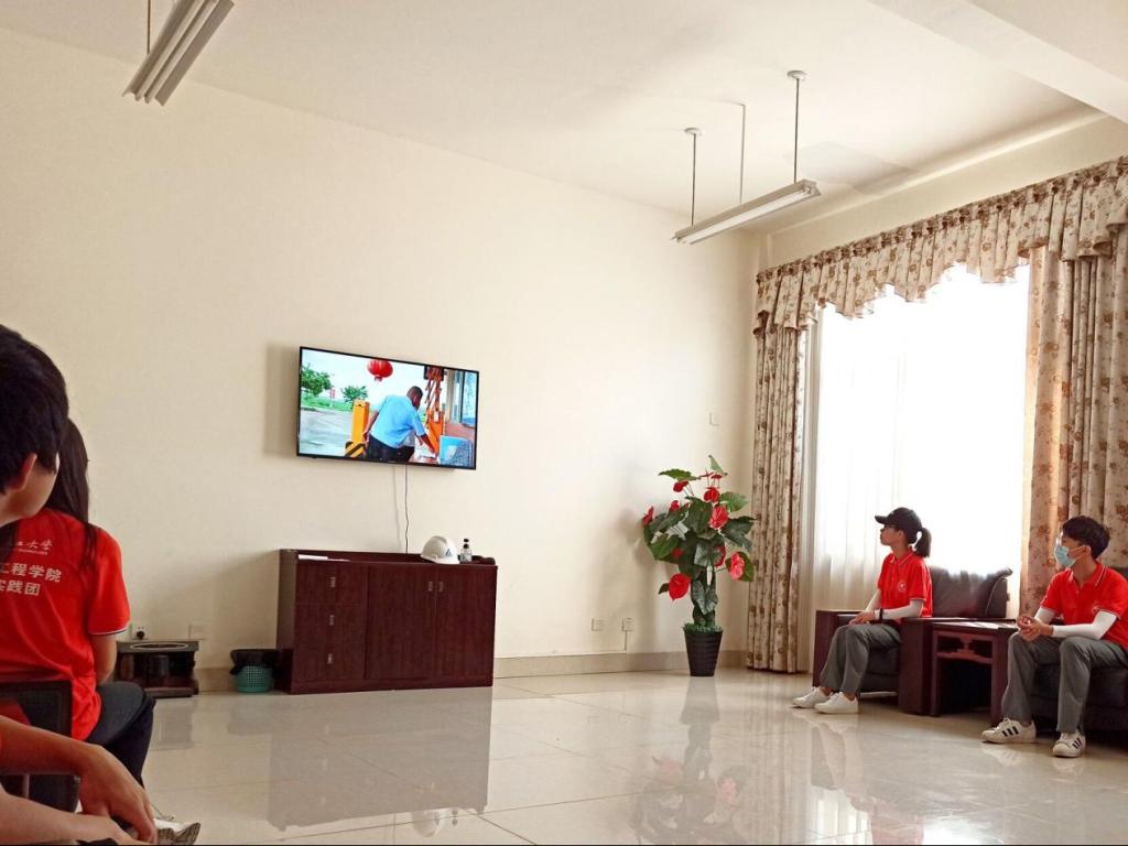 (实践人员参观工厂前观看学习安全教育视频)