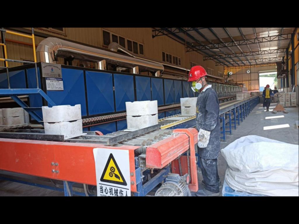 (工厂操作人员收集灼烧后的成品)