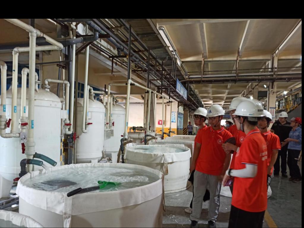 (实践人员参观稀土前段处理中的沉淀过程)