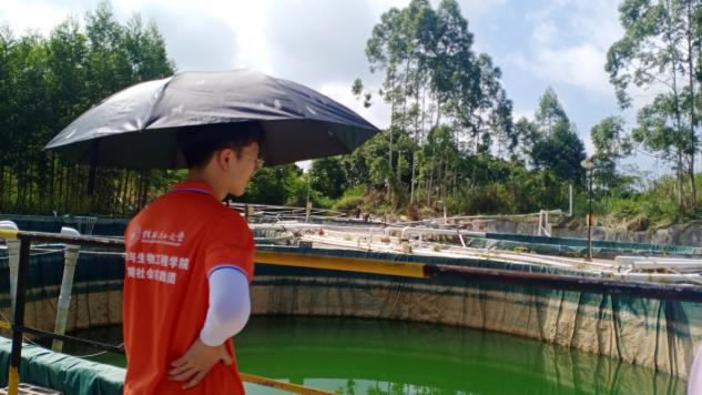 (实践人员参观去除原材料中的杂质的沉淀池)