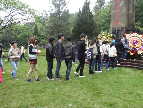 导航痕迹 当前位置: 主页 >> 学生工作 >> 学生活动 >> 正文 祭扫先人墓,缅怀先烈恩 作者: 发布日期:2013-04-07 浏览次数: 为缅怀马君武先生,秉承一代教育大师的伟大精神。4月3日早上,生物工程12级全体同学前往雁山镇马君武先生之墓进行扫墓活动。通过这次活动,让我们缅怀了先烈,也激发了同学们内心报效祖国的决心与信念,向烈士学习,不懈奋斗,振兴中华。 现场1 现场2 上一条:化生学院举行“中国梦,资助情”系列活动启动仪式 下一条:工口漫画 本科四支部到桂林园博园开展学雷锋活动