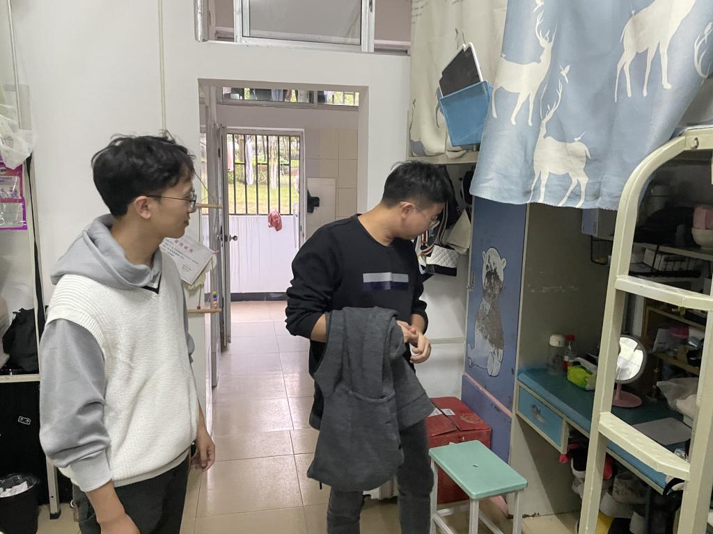 学生宿舍安全防护意识,引导同学们养成良好的卫生习惯。11月25日中午,学院学生工作办公室全体辅导员深入本科生、研究生宿舍开展安全隐患排查工作。