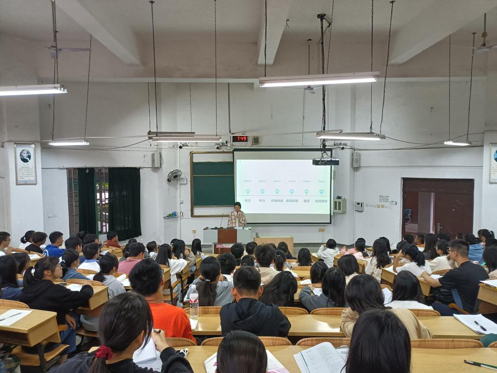 邀请保研学生薄开雯、黄悦为2022级学生开展英语四级过级经验分享,并围绕四级考试内容做英语四级专题培训。培训在05103教室开展,2022级全体学生参加。