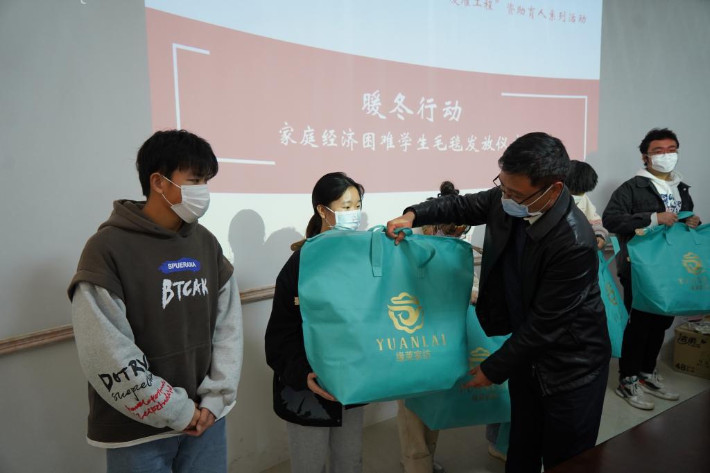 为贯彻落实高校家庭经济困难学生资助政策,进一步帮助家庭经济困难学生更好地学习生活,解决家庭经济困难学生的现实需求,2022年12月13日,学院开展了“暖冬行动”为家庭经济困难学生发放过冬毛毯。学院党委副书记李少华、辅导员梁精华参与发放仪式。