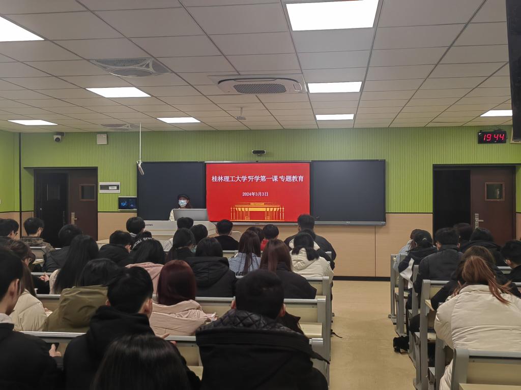 为帮助学生快速收心,以饱满的激情和状态迎接新学期学习生活。学院于3月3日在雁山校区开展2024年春季学期“开学第一课”专题教育。本次专题教育由各年级辅导员讲授,全体研究生、本科生参加了活动。