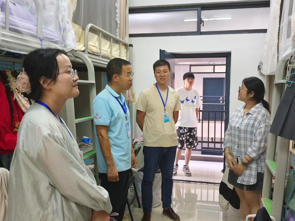李少华和孔翔飞在检查中强调,安全工作是学院发展的基石,容不得丝毫马虎。相关人员要进一步提高安全意识,落实安全责任,对排查出的问题要跟踪整改到位,确保假期校园安全稳定。在深入宿舍走访时,排查小组提醒各位同学假期出行要注意交通安全,选择正规交通工具;在宿舍要严格遵守用电用水规定,不使用违规电器;离开宿舍时,要关闭电源、水源,锁好门窗,做好个人财物保管。若遇到可疑情况或安全问题,及时与老师或学校保卫部门联系。走访宿舍过程中,检查小组还提前为同学们送上了中秋祝福。