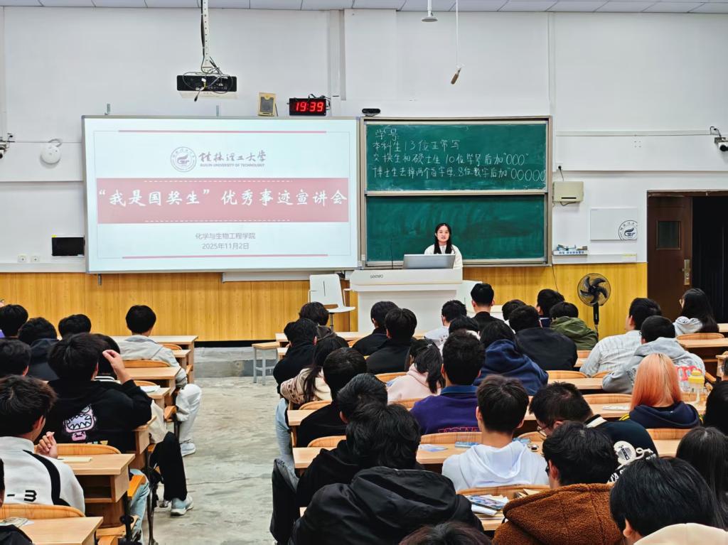 于雁山校区06206教室开展“我是国奖生”优秀事迹宣讲会。此次活动由学院资助专项工作负责人马亚博老师主持,特邀周思羽、杨雁怡、金振明、虞莹等4位学生代表分享,2025级400余名学生参与。