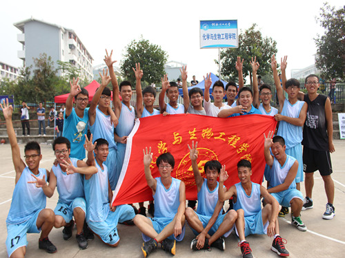 青春是昂扬向上的,青春是活力四射的。2014年10月26日上午九点四十分,化生学院与旅游学院在一号组团篮球场进行了本届“新生杯”的男子组冠军争夺战,