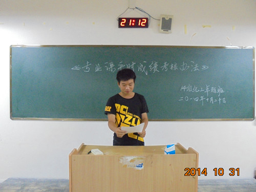 学习活动伊始,14级新生的学生代表为大家宣读《专业课平时成绩考核办法》的文件,《专业课平时成绩考核办法》分别从平时成绩的课程范围、平时成绩考核内容、平时成绩计算方法、平时成绩的公布这四个方面为同学们作了详细的介绍。