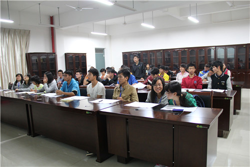 在雁山12209会议室召开本科教学审核评估知识普及座谈会。学院12级辅导员何宗辉老师与学院各学生组织代表,各班级主要学生干部一起参加了座谈会。