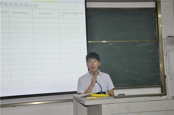 何宗辉老师主讲,何老师分别从党组织关系的涵义、党组织关系的重要性和党组织关系转接流程等几个方面进行讲解。在讲解过程中,何老师深入浅出的运用各种实例为毕业生党员讲解分析党组织关系转接的意义,并着重强调了往年在办理党组织关系转移手续时出现的问题,提醒大家注意避免出现类似的问题。此次培训会,使得毕业生党员明确了转接组织关系的具体流程和方法步骤,为确保毕业生党员组织关系转接工作的顺利开展提供保障作用。