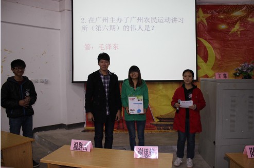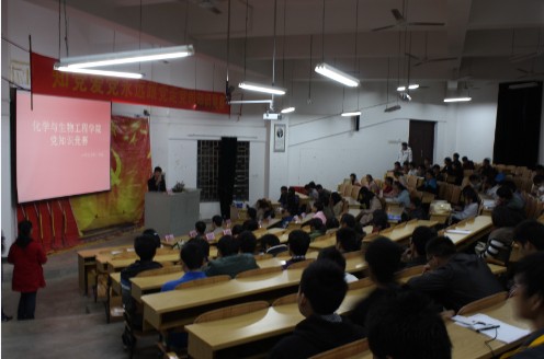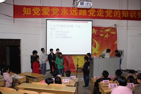 本科一支部于11月29日晚上7:30在05101教室隆重举行“知党、爱党、永远跟党走”为主题的党知识竞赛。学院12级辅导员何宗辉老师及各支部代表、各年级同学到场观看了比赛。