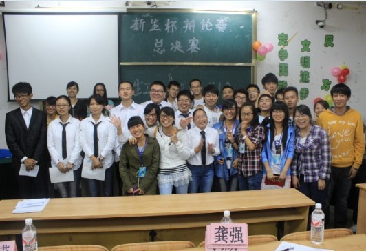 2013级“新生杯”辩论赛决赛在06408教室举行。院团委书记周德海老师作为嘉宾观看了比赛。