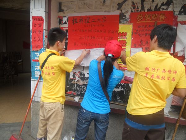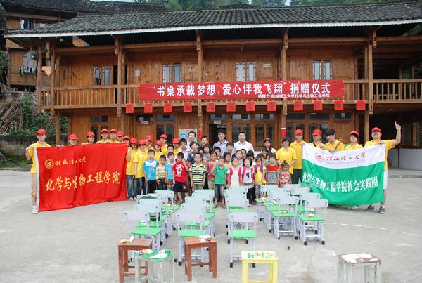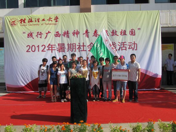 团委根据教育部等七部委《关于进一步加强高校实践育人工作的若干意见》文件精神以及学校团委《关于组织开展学校2012年暑期大学生社会实践和就业见习活动的通知》要求,组织了由20多名学生骨干组成的实践团于2012年7月7日-7月11日赴桂林市龙胜县和平乡开展了以“弘扬广西精神践行青年责任”为主题的向希望小学捐赠桌椅、红色经典电影展播、城乡清洁工程、疾病防治知识及反邪教、反传销知识宣传、支农支教、文体娱乐交流、慰问贫困学生、慰问孤寡老人以及走访调研少数民族地区社会经济发展情况等暑期社会实践活动。