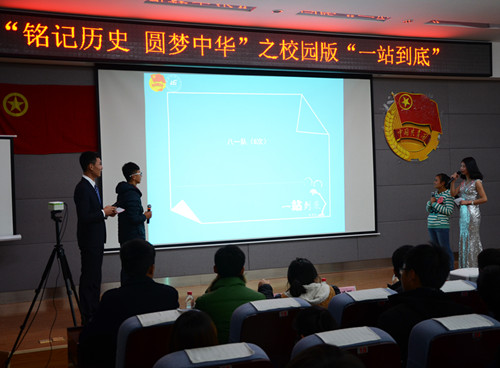 团委学生会承办的“铭记历史,圆梦中华”12月大型团日活动之校园版“一战到底”决赛在逸夫楼报告厅隆重举行。出席本次比赛的有化生学院13级辅导员陈文甫老师、校团委学生部办公室主任及各兄弟学院嘉宾。