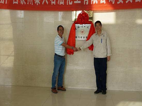 与广西钦州泰兴石油化工有限公司实习就业基地揭牌仪式(左为学院代表梁军书记,右为公司代表吉元来副总经理)