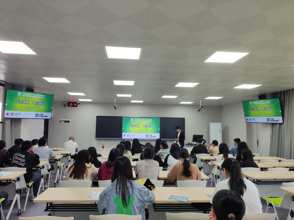 活动中,我校2020届生物工程专业毕业生正大集团hr韦璟回到母校,与团员青年交流分享创业经验。他提到大家一要认清所处环境,明确自我要求。要积极分析自己作为零零后的优势,结合自身经历思考中如何在机遇与挑战中发挥能力;二要不给自己“贴标签”,也不限制自身发展的“可能性”。鼓励大家在校期间勇于尝试新鲜事物,学习、发掘自身更广阔的发展空间,提高自我“可塑性”;三要具有“空杯心态”,吸取“月盈则亏”的教训。同学们的冲劲和力气用在做事的专注度中会逐渐成事,不用“太满”,留给自身空间去吸收、总结才能不断进步;四要给自己的事业一个“静待花开”的过程。以一个“慢视角”,阶段性成长起来会更稳固。最后他希望师弟师妹们能够找到平台,更好地释放自己的能量,做一个优秀、合格的社会人。