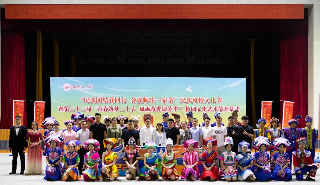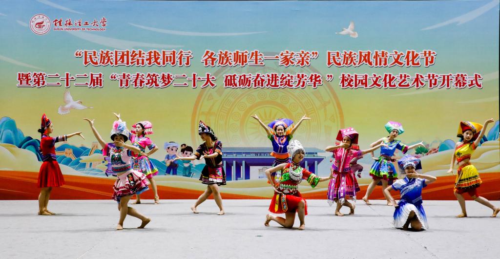在雁山校区新体育馆顺利承办学校“民族团结我同行 各族师生一家亲”民族风情文化节暨第二十二届“青春筑梦二十大 砥砺奋进绽芳华 ”校园文化艺术节开幕式。学校党委统战部、团委相关负责人和二级学院党委副书记、团委书记、辅导员代表、千余名学生参加了此次活动。