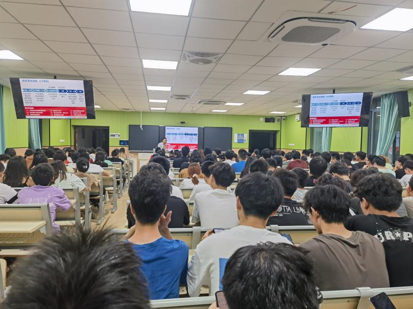 刘老师结合学院近五年考研数据整体分析了学院各专业考研趋势,并从院校和专业的选择、备考计划的制定等方面给同学们提供了可行性强的建议。他强调,考研是一个系统工程,需要同学们尽早做好考研规划和准备,希望同学们能够坚定信心,在学习上精益求精,在生活中磨砺意志,为实现考研梦想奋力拼搏。