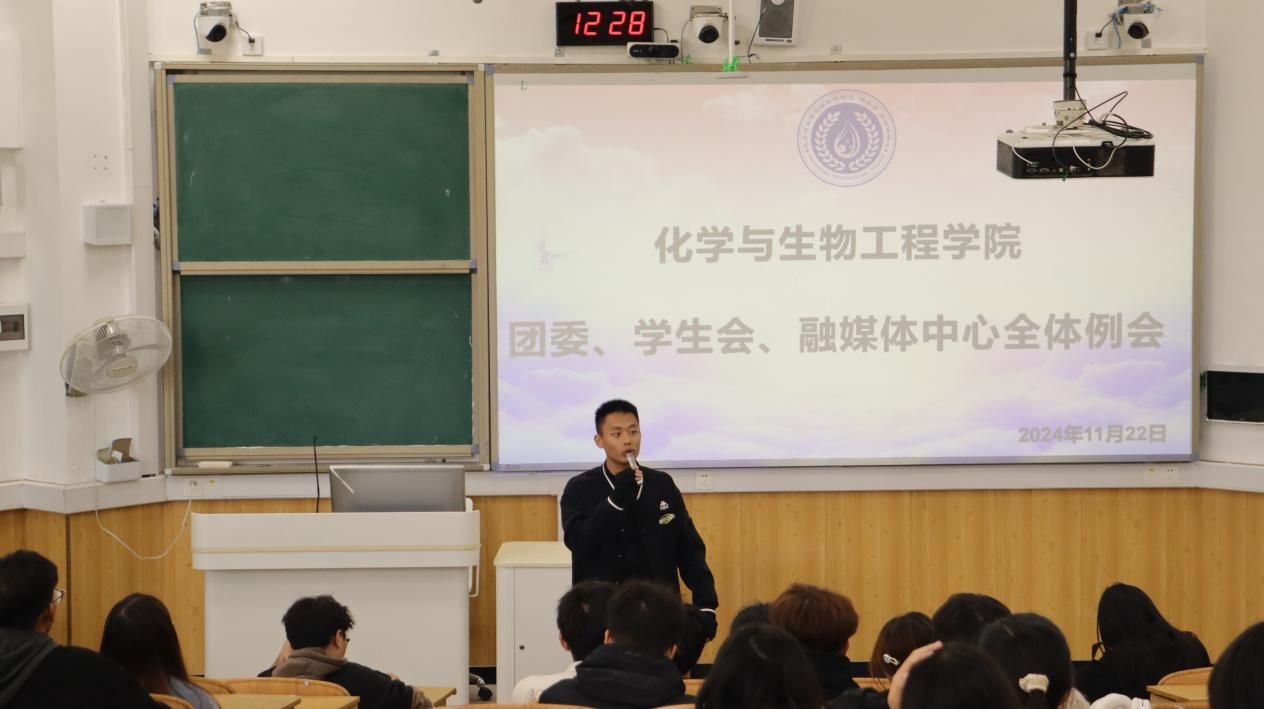 为提升学生干部专业技能水平,夯实学生会服务能力根基,11月22日,化学与生物工程院在雁山校区05103教室召开2024年秋季学期第二次学生会工作例会,核心开展技能专题培训环节。会议由学院团委书记宋海民老师主持,学生会全体成员参会。