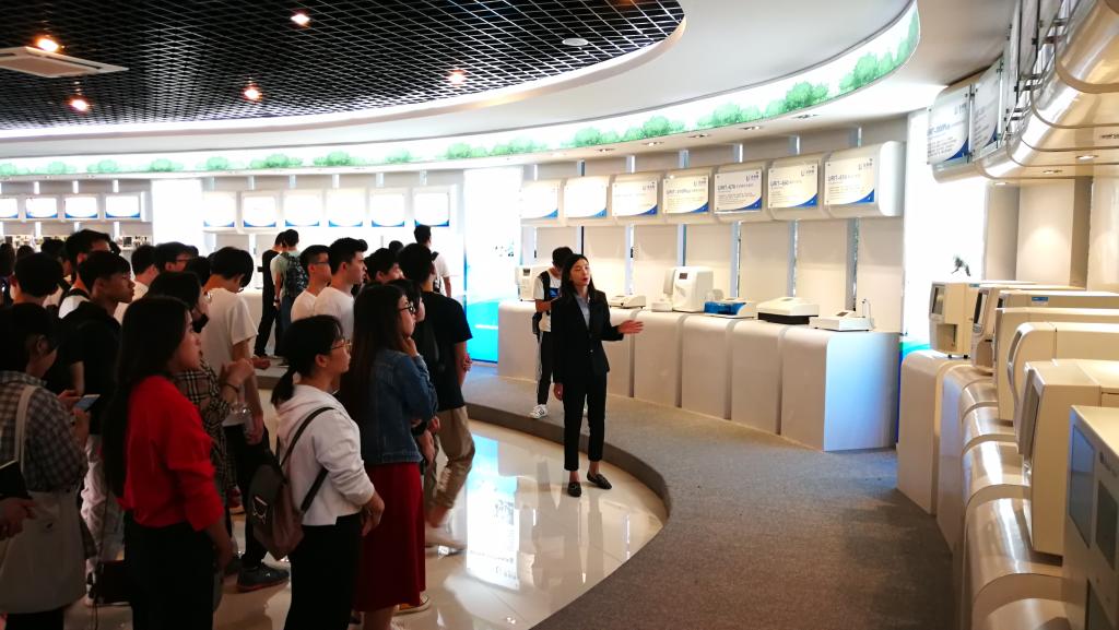 参观期间,优利特医疗电子有限公司谭丽玲女士带领黄道坤老师一行参观了公司品牌文化与产品展示厅,详细介绍了医学诊断系列产品的功能与作用。参观展示厅结束,公司人事部经理蒋继军与老师们在会议室进行了座谈交流,在向大家介绍了公司校园招聘及实习计划具体情况后,特别邀请了公司高管蒋均分享了自己的创业感受,他用实际创业经历引导同学们应科学规划职业生涯,在未来的人生道路上实现高远梦想。